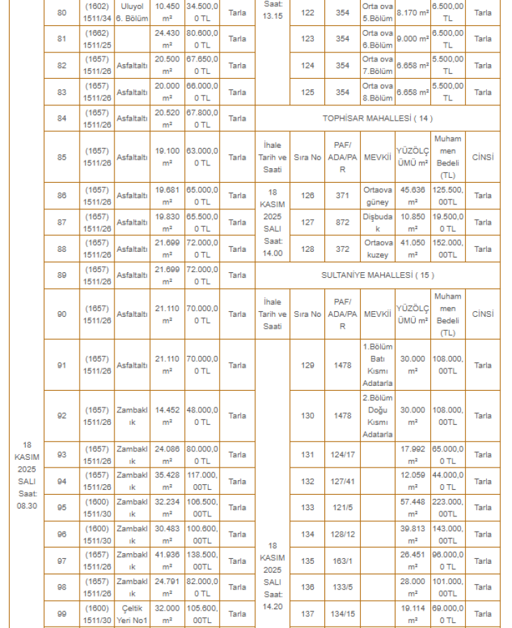 Her taşınmazın ihalesi ayrı ayrı yapılacak.