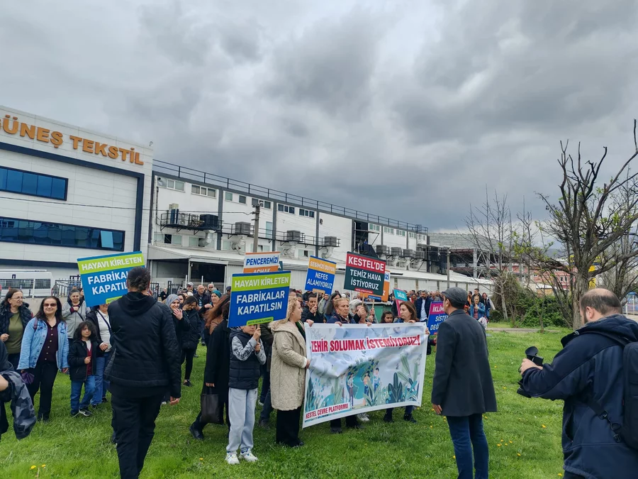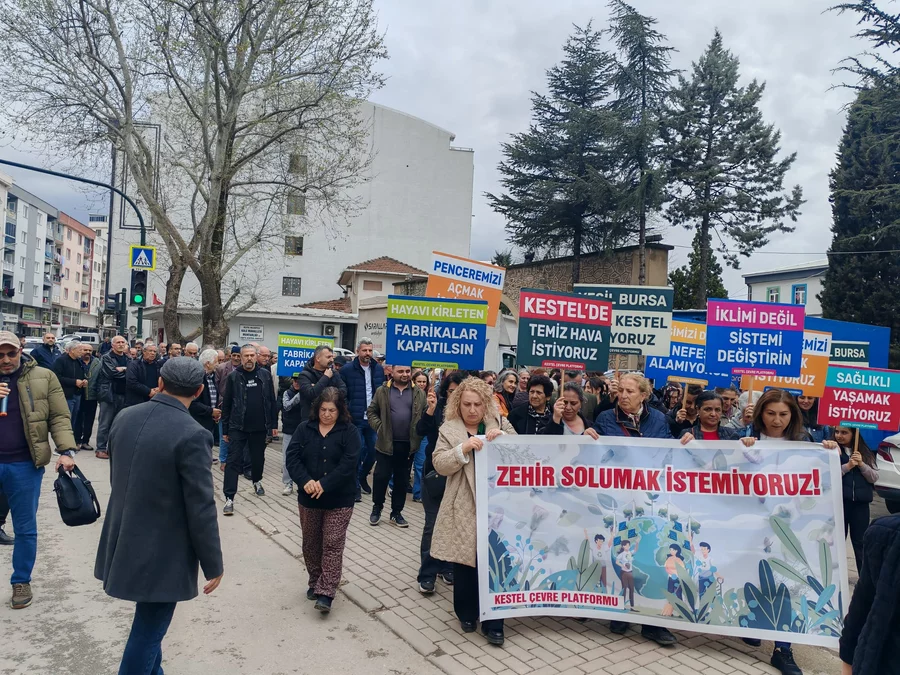 BURSA, 04 Nisan 2026 Cumartesi, 15:03Kestelliler, "Kestel halkı nefes almak istiyor" sloganıyla bir araya gelerek, yaşam alanlarının ortasında faaliyet gösteren fabrikanın çevreye ve insan sağlığına zarar verdiğini dile getirdi.