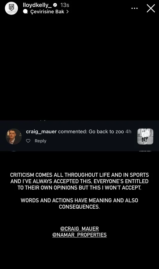 SPOR, 18 Şubat 2026 Çarşamba, 23:37Juventus forması giyen 27 yaşındaki Lloyd Kelly, İstanbul'da oynanan Galatasaray karşılaşmasının ardından sosyal medyada ırkçı saldırıya uğradı. Bir kullanıcı, Kelly'nin paylaşımının altına "Hayvanat bahçesine geri dön" şeklinde bir yorum bıraktı.