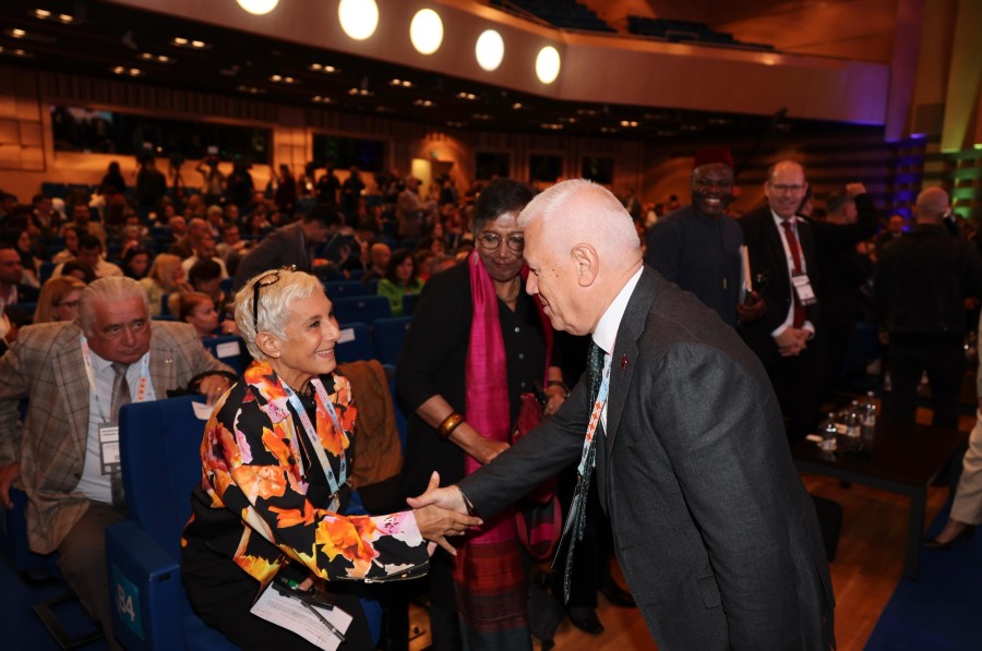 Salonda bulunan Filistinli ve diğer katılımcılar, Başkan Bozbey'i uzun süre alkışlayarak konuşmasına destek verdi.