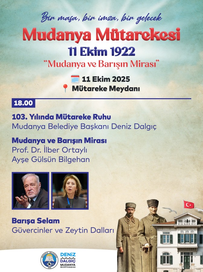 "Mudanya Mütarekesi ile bağımsızlık meşalesi yeniden parladı, özgürlük inancı perçinlendi. Bugün biz de bu değerli mirasa sahip çıkmanın onurunu yaşıyoruz. Bir masa kuruldu, bir imza atıldı, bir gelecek kuruldu. 103 yıl önce barış burada yazıldı. Mudanya, barıştan vazgeçmeyenlerin kentidir. 11 Ekim'de, geleceğin doğduğu Mütareke Meydanı'na Cumhuriyet ve barış sevdalılarını bekliyoruz."