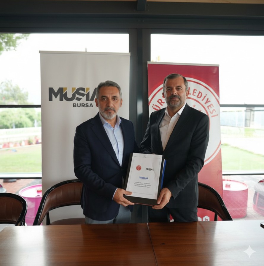 BURSA, 08 Ekim 2025 Çarşamba, 12:33İmza töreninde konuşan MÜSİAD Bursa Şube Başkanı Alparslan Şenocak, ortak çalışmanın sanayiciler için stratejik önemine dikkat çekerek, "Yapay zeka odaklı yeşil ve dijital dönüşüm artık sanayiciler için bir tercih değil; küresel rekabette var olabilmenin bir zorunluluğu. Gürsu Belediyemiz ile başlattığımız bu değerli proje, firmalarımıza sürdürülebilirlik alanında önemli bir rekabet avantajı kazandıracak. En büyük yatırımımız olan gençlerimize yapay zeka ve döngüsel ekonomi gibi alanlarda vizyon kazandırarak, onları sanayimizin geleceğine hazırlıyoruz. Bu iş birliğiyle hem firmalarımızın yeşil dönüşümüne rehberlik edecek hem de nitelikli insan kaynağını şehrimize kazandıracağız. Projemizin hayırlı olmasını diliyor, başta Gürsu Belediye Başkanımız olmak üzere tüm paydaşlarımıza teşekkür ediyorum." ifadelerini kullandı.