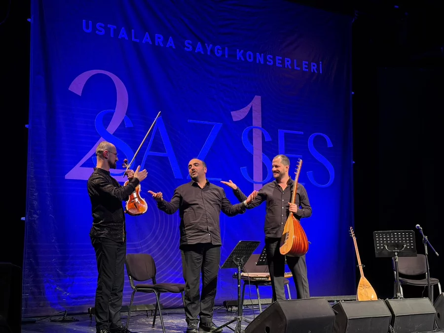 BURSA, 15 Nisan 2026 Çarşamba, 11:10Nilüfer Belediyesi tarafından hayata geçirilen "2Saz 1Ses: Ustalara Saygı" konserleri serisi, üçüncü ve kapanış programıyla sona erdi. Nazım Hikmet Kültürevi'nde düzenlenen gecede, Ozan Sari kemanıyla, Mahmut Cemal Sari bağlamasıyla sahne aldı. Gecenin konuk sanatçısı ise Bursa Devlet Klasik Türk Müziği Korosu sazendelerinden kanun sanatçısı Savaş Özkök oldu. Özkök, kanunu ve güçlü sesiyle performansıyla eşlik ederek geceye ayrı bir renk kanttı.