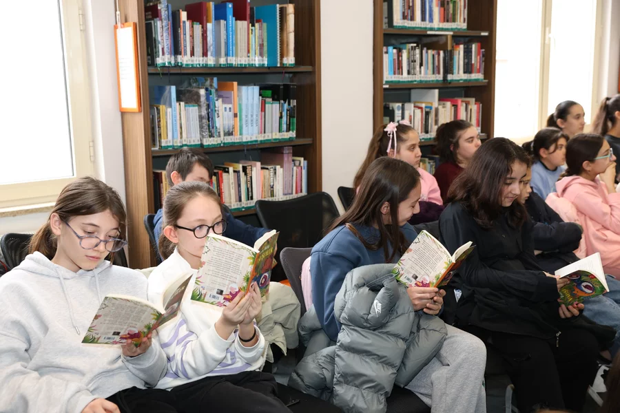 Söyleşinin sonunda çocukların sorularını içtenlikle yanıtlayan Burcu Aktaş, günün anısına kitaplarını imzaladı.