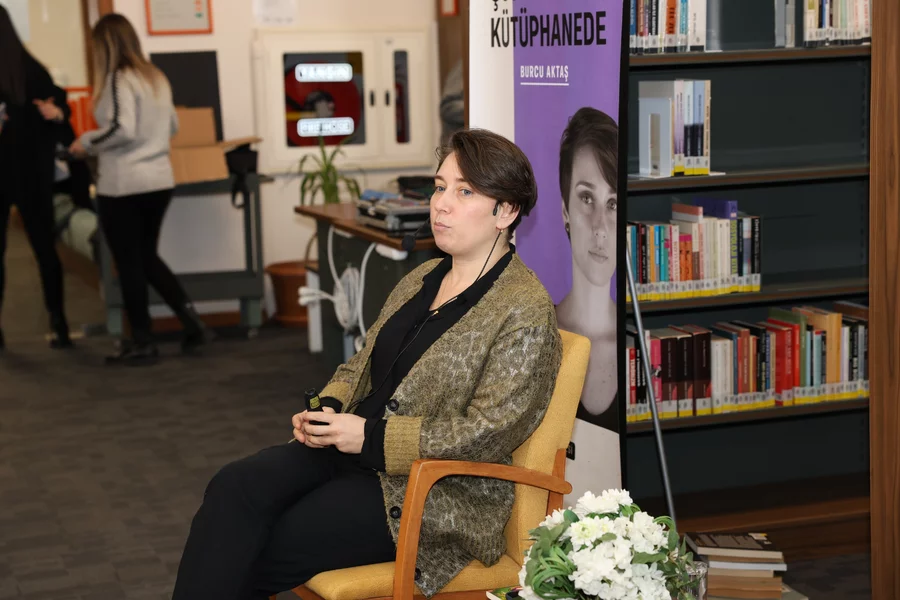 Söyleşide yazarlık serüvenini ve kitabın ortaya çıkış hikâyesini paylaşan Burcu Aktaş, çocukları "Vahşi Şeyler" romanının 85 buçuk yaşındaki kahramanı Mualla'yı anlattı. Kendi yaşamadığı bir dönemi kaleme almanın zorluklarına değinen Aktaş, karakteri yaratırken yaptığı gözlemleri şu sözlerle aktardı: "Bir karakter yaratırken onun gerçekçi olması gerekir. Ben henüz o yaşta olmadığım için, 85 yaşındaki birinin nasıl yürüdüğünü, nasıl oturduğunu çok iyi gözlemlemek zorundaydım. Mualla, değişen ve betonlaşan şehre artık sadece penceresinden bakan, dışarıdaki hıza ayak uyduramayan bir karakter."