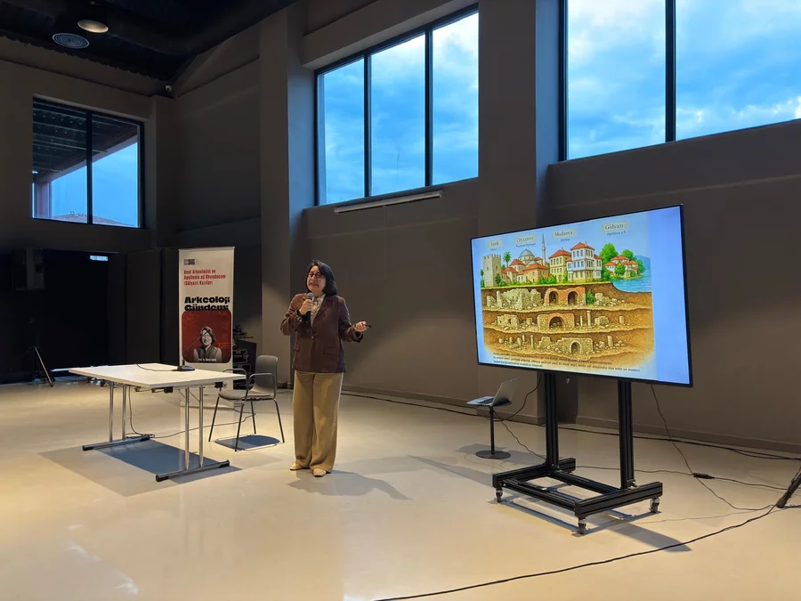 BURSA, 29 Nisan 2026 Çarşamba, 14:51Nilüfer Belediyesi tarafından Pancar Deposu'nda düzenlenen Arkeoloji Gündemi söyleşisinin son konuğu Bursa Uludağ Üniversitesi (BUÜ) Arkeoloji Bölümü Ortaçağ Arkeolojisi Anabilim Dalı Başkanı Prof. Dr. Derya Şahin oldu. "Kent Arkeolojisi ve Apollonia ad Rhyndacum (Gölyazı) Kazıları" başlıklı söyleşide arkeolojinin, kenti anlamlandıran ve köklendiren bir araç olduğu konuşuldu.