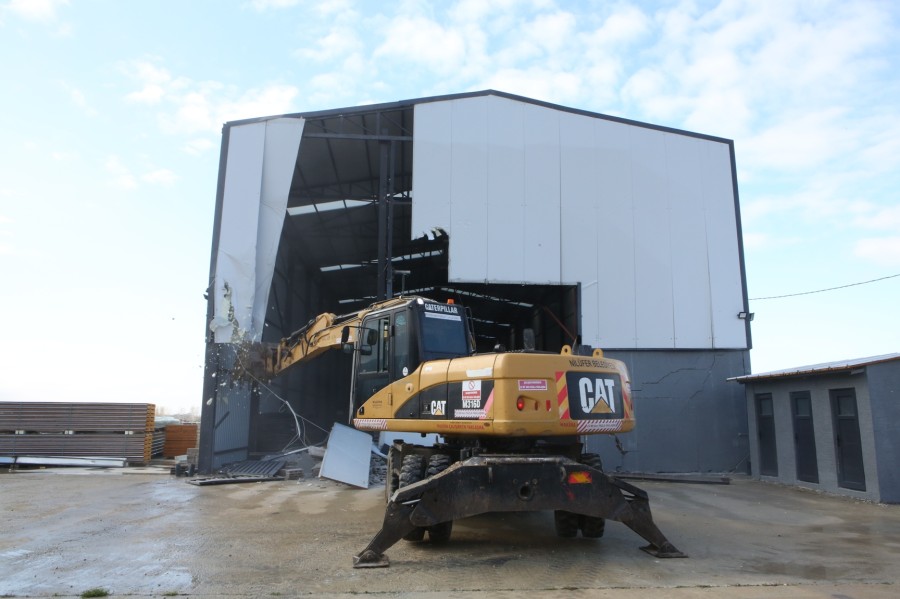 Çalı Mahallesi'ndeki işlemlerin ardından Akçalar Mahallesi'ne geçen ekipler, burada da 700 metrekare büyüklüğündeki iş yerini kısmen yıkarak, kullanılamaz duruma getirdi.