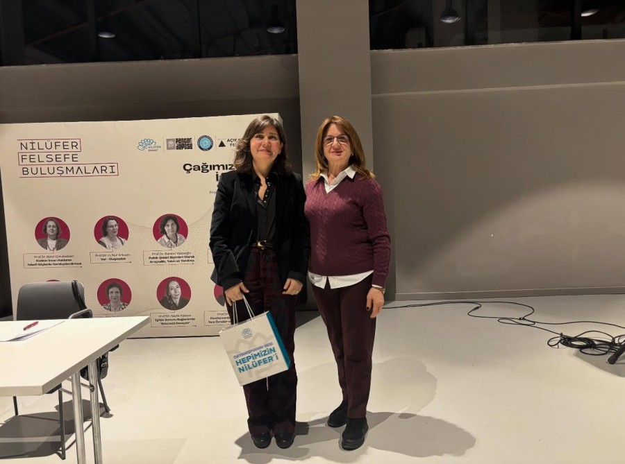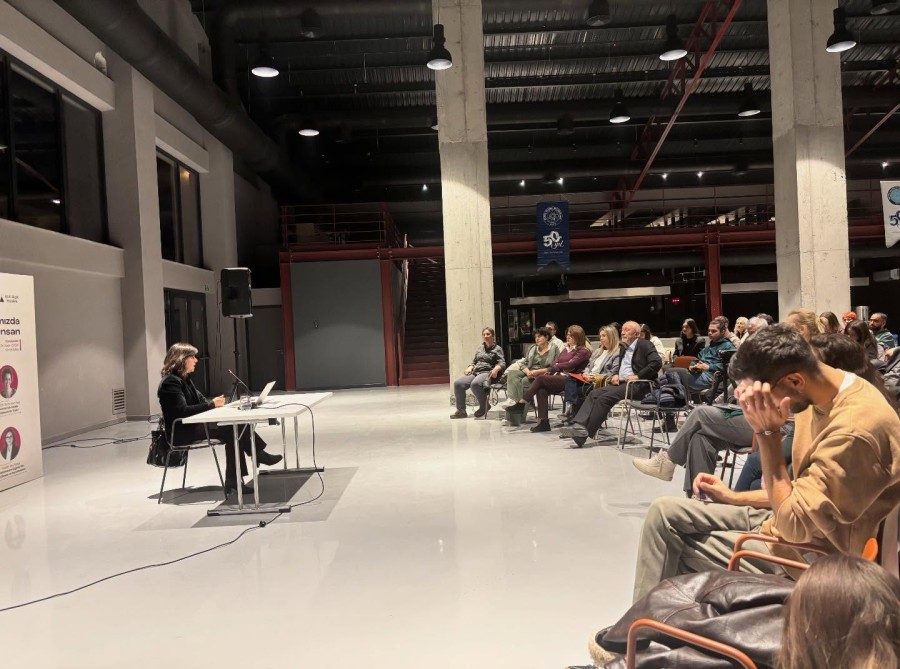 BURSA, 17 Aralık 2025 Çarşamba, 09:45Nilüfer Belediyesi'nin Pancar Deposu'nda düzenlediği Nilüfer Felsefe Buluşmaları'nın yılın son oturumu gerçekleştirildi. Prof. Dr. Sanem Yazıcıoğlu'nun sunduğu "Politik Şiddet Biçimleri Olarak Araçsallık, Yalan ve Yanıltma" başlıklı söyleşide, günümüz siyasetinin temel sorunları felsefi bir perspektiften ele alındı. Söyleşiyi Nilüfer Belediye Başkanı Şadi Özdemir'in eşi Nuray Özdemir de takip etti.