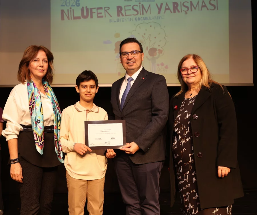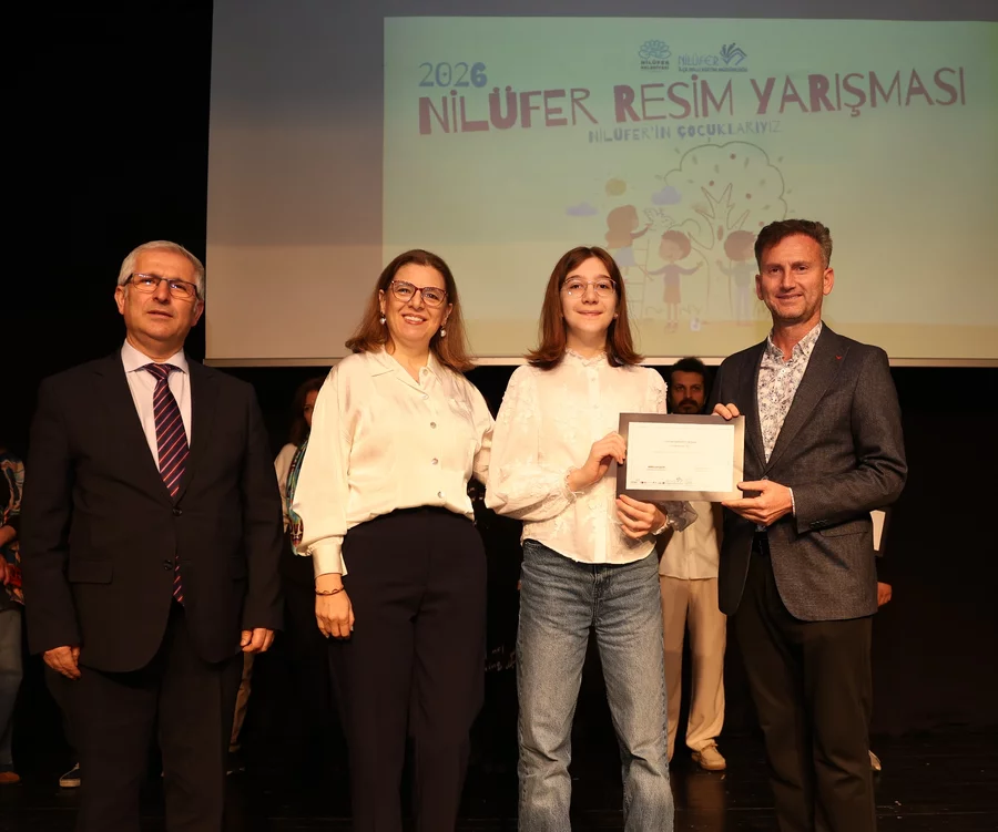 BURSA, 03 Nisan 2026 Cuma, 14:57Nilüfer Belediyesi ile Nilüfer İlçe Milli Eğitim Müdürlüğü iş birliğinde düzenlenen "Nilüfer Resim Yarışması"nın ödül töreni ve sergi açılışı Konak Kültürevi'nde gerçekleştirildi. Bu yıl "Nilüfer'in Çocuklarıyız" temasıyla gerçekleştirilen yarışmaya, ilçe genelindeki 19 farklı okuldan öğrenciler katılarak eserleriyle kente dair duygu ve düşüncelerini resmetti.