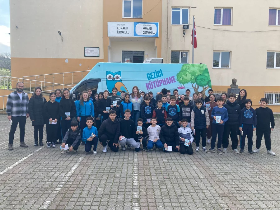 Ardından Melis Sena Yılmaz, Gezici Kütüphane'de rotasındaki Konaklı'daki öğrencilerle de buluştu.