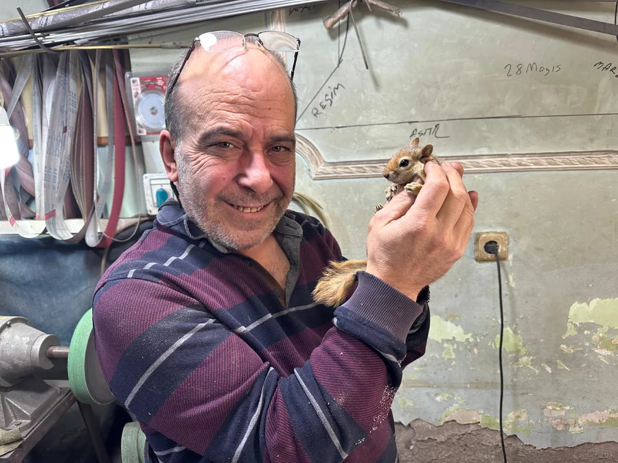 Sincabının üzerinden nadiren indiğini belirten Murat Övül, "Sincabım benim yakın arkadaşım. Çalışırken, işteyken sokaktayken üzerimden hiç inmez. Beni annesi biliyor. 4.5 aydır beraberiz" dedi.