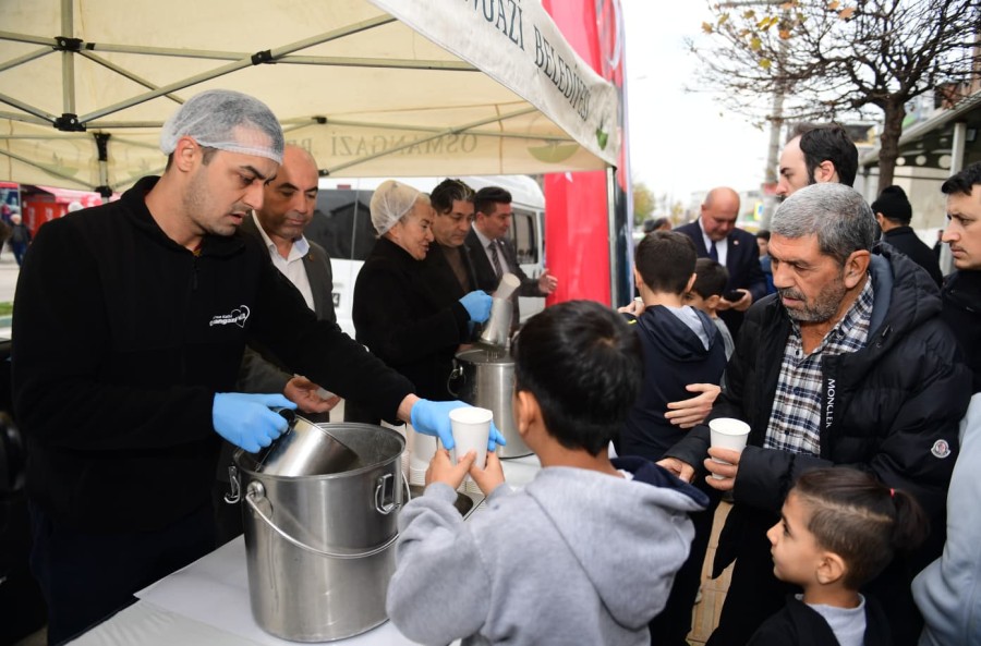 Başkan Aydın, namaz çıkışının ardından bölgedeki vatandaşlara çorba ikramında bulundu.