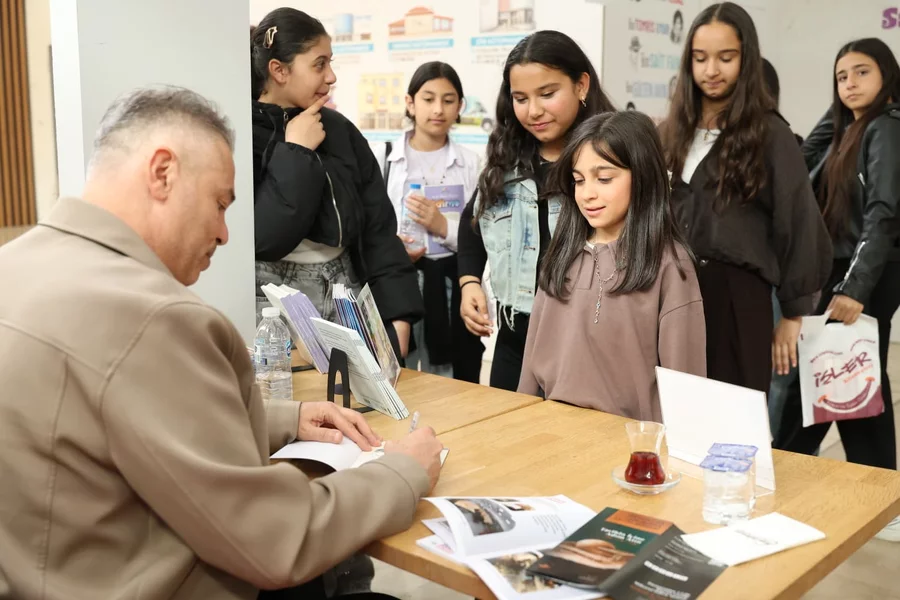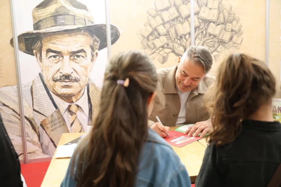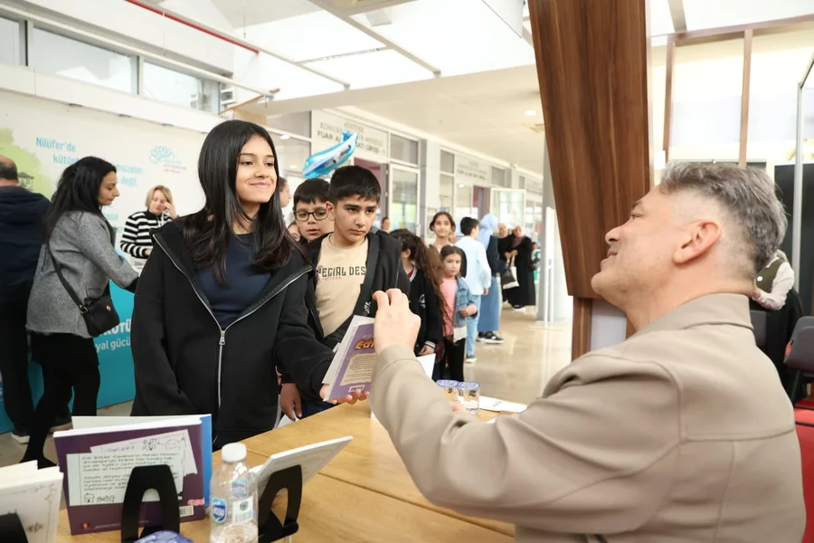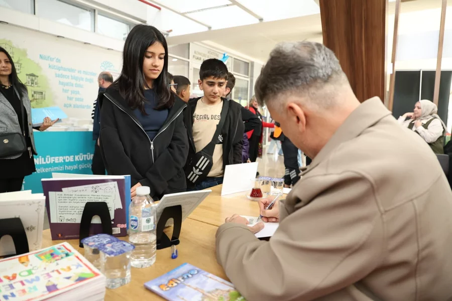 BURSA, 18 Nisan 2026 Cumartesi, 13:43TÜYAP Bursa Fuarcılık Anonim Şirketi tarafından Türkiye Yayıncılar Birliği iş birliğiyle 11-19 Nisan tarihleri arasında Merinos Atatürk Kongre ve Kültür Merkezi Fuar Alanı'nda düzenlenen Bursa 23. Kitap Fuarı'nda stant açan Osmangazi Belediyesi, sevilen yazarları imza günlerinde okurlarla bir araya getiriyor. Fuar kapsamında ilk olarak oyuncu ve yazar Nilüfer Açıkalın ağırlanırken, fuarın ikinci imza gününde Cezmi Ersöz okurlarıyla buluştu.