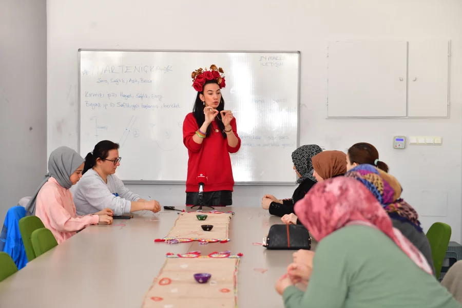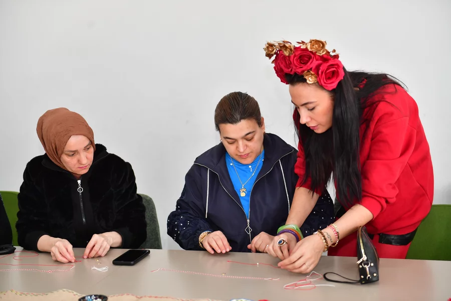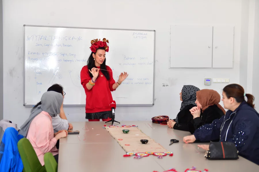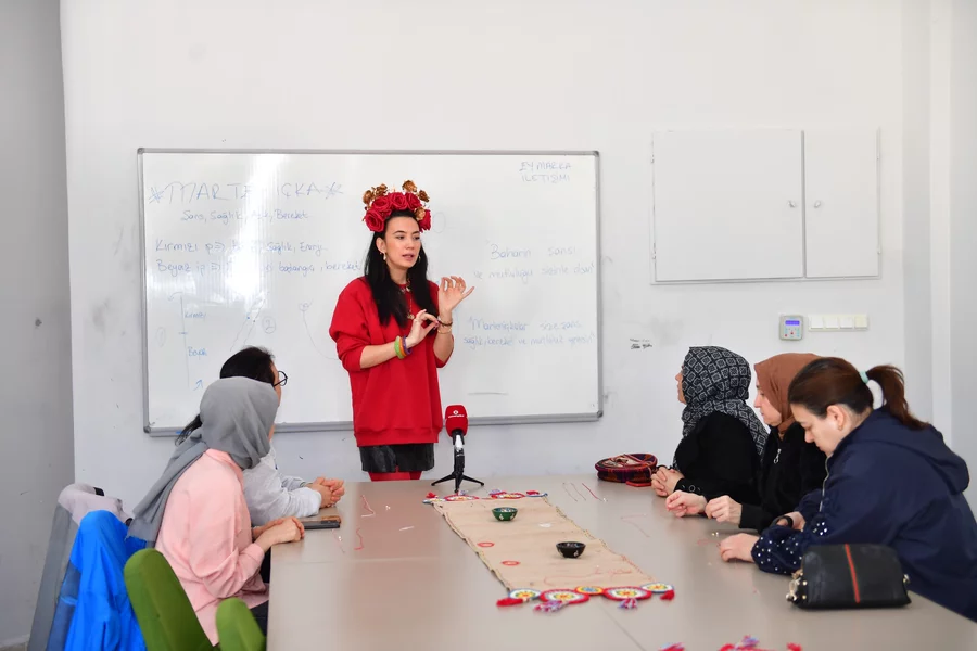 BURSA, 08 Mart 2026 Pazar, 12:21Atölye çalışmalarıyla Osmangazi'deki vatandaşları üretime ve kültürel paylaşımına teşvik ederek, kent yaşamına değer katan Osmangazi Belediyesi, baharın gelişini müjdeleyen 'Marteniçka Atölyesi'ni gerçekleştirdi. Demirtaş Kültür Merkezi'nde düzenlenen atölyede kadınlar, marteniçka bilekliklerini yaparak el becerilerini geliştirme şansı buldu. Samimi ve keyifli bir ortamda gerçekleşen etkinlikte kadınlar, marteniçka geleneğinin kökeni, anlamı ve Balkan kültüründeki yeri hakkında da bilgilendirildi.