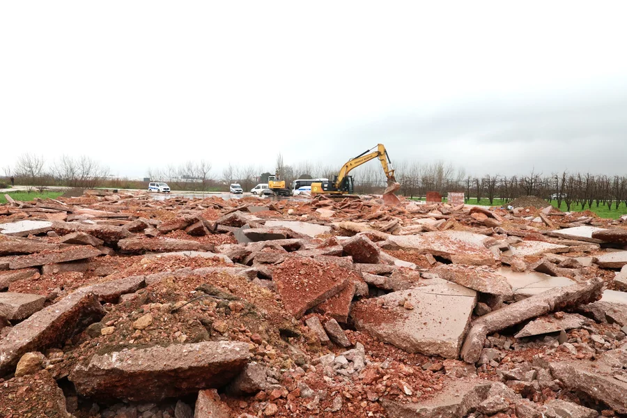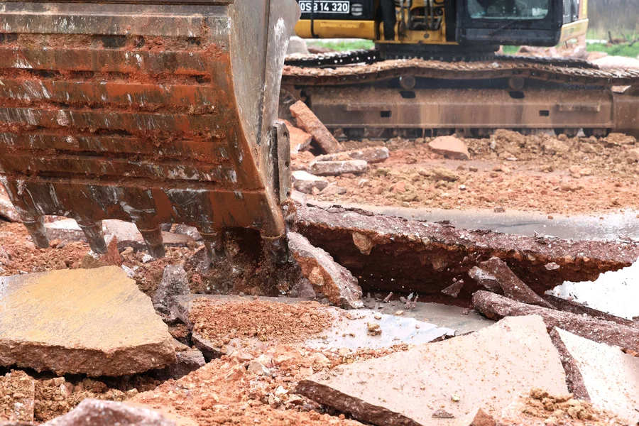 Polis ve zabıta ekiplerinin gerekli güvenlik önlemlerini almasının ardından, inşaat halindeki kaçak deponun temel betonu iş makineleri yardımıyla kırılarak yıkıldı.