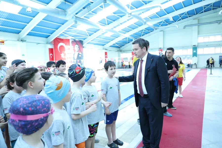 BURSA, 20 Nisan 2026 Pazartesi, 15:2323 Nisan coşkusunu çocuklara dolu dolu yaşatmak amacıyla çeşitli etkinlikler hazırlayan Osmangazi Belediyesi, bu doğrultuda Osmangazi Yüzme Şenliği'ni hayata geçirdi. Demirtaş Yüzme Havuzu'nda düzenlenen şenliğin startını Osmangazi Belediye Başkanı Erkan Aydın verdi. Minik yüzücüler havuzda büyük bir azimle yarışırken, aileleri de tribünlerden onları gurur ve heyecanla takip etti.