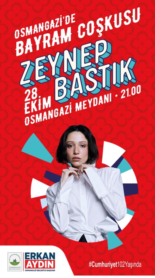 28 Ekim günü Osmangazi Meydanı'nda sevilen sanatçı Zeynep Bastık sahne alacak.