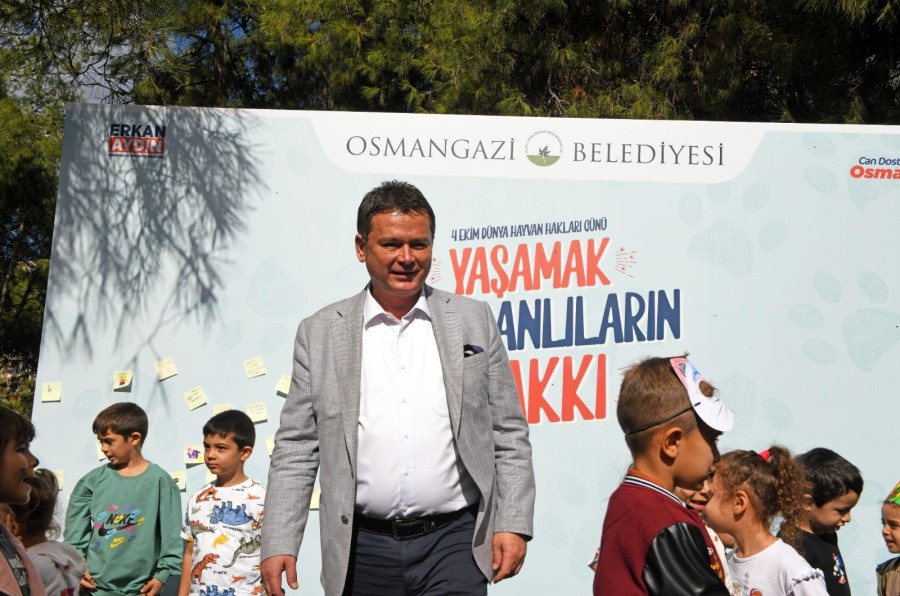 4 Ekim Dünya Hayvanları Koruma Günü'nü bir bayram havasında kutladıklarını ifade eden Osmangazi Belediye Başkanı Erkan Aydın, ' Bugün çocuklar eğleniyor, hem de can dostlarımızla iletişim kuruyorlar. Bu ortamı şenlendiriyorlar, bizde 4 Ekim Hayvanları Koruma Günü'nde can dostların haklarını korumak, onlara daha iyi bir yaşam alanı imkanı sunmak ve elimizden gelen hizmetin en iyisini yapmak için mücadele ediyoruz. Burada 119 dönümlük bir alanda Türkiye'nin en iyilerinden birinde hizmet ediyoruz. Kısa bir süre sonrada 75 bin metre karelik bir alanda ilave bir barınak açacağız. Oranın alt yapı çalışmaları başladı. Bir kaç ay içerisinde çalışma ve hizmetlerimizi bitirerek Osmangazi'mizde toplam 200 bin metre kare alanda hizmet etmeye devam edeceğiz. Benimde evimde Şero adında bir kedim Duman adında bir köpeğim, makamımızda da Fıstık ve Mars adında kedilerimiz var bize günün yoğun stresini unutturuyorlar. Siz bir sevgi verdiğinizde onlar 10 kat karşılık veriyorlar. Can dostlarımızın gününü kutluyoruz' dedi.