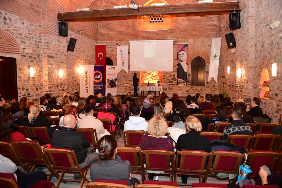 BURSA, 19 Şubat 2026 Perşembe, 11:53Toplumsal gelişimi yalnızca fiziki yatırımlarla değil, düşünsel ve kültürel üretimle de destekleyen Osmangazi Belediyesi, felsefeye yönelik buluşmalarıyla kentin entelektüel iklimine güçlü bir katkı sunuyor. Bu doğrultuda düzenlenen Felsefe Buluşmaları'nda Sosyolog Yazar Kemal Karadayı, 'Antik Mısır Bilgeliği' hakkında bilgilendirmelerde bulundu. Ördekli Kültür Merkezi'nde geniş bir katılımın olduğu buluşmada Antik Mısır medeniyetine geniş bir perspektiften bakan Karadayı, dinleyicilere kadim bir medeniyetin düşünce mirasını aktardı. Karadayı, Mısır Piramitleri'nden Mısır Mitolojisi için çok önemli bir yere sahip olan Osiris'e kadar pek çok konudan önemli detayları paylaştı.