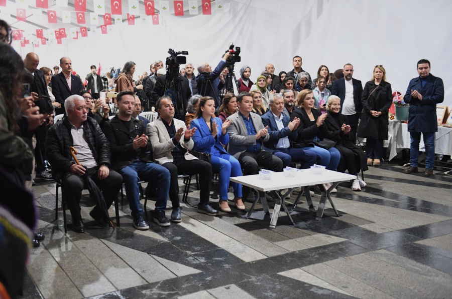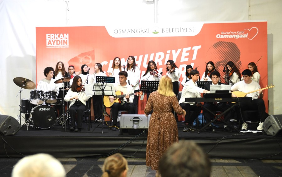 Herkesin Cumhuriyet Bayramını kutlayarak sözlerine başlayan Osmangazi Belediye Başkanı Erkan Aydın, "Cumhuriyet Bayramı kutlu olsun nice 102. Yıllara Cumhuriyet kimsesizlerin kimsesi, Büyük Önder Atatürk, Avrupa'nın 150 yılda yaptığı değişim, gelişim ve devrimi 15 yılda yapmıştır. Büyük Önder Atatürk, savaşlarda kırılmış ve yorulmuş bir halkı, medeniyetle tanıştırarak tarihin en önemli sürecini başlatmıştır. Bunu başaran ve önderlik eden Büyük Önder Atatürk ve silah arkadaşlarını bir kez daha saygı minnet ve rahmetle anıyoruz. Cumhuriyetin herkes için bir önemi var ama öncelikle kadınlar için önemi her şeyden daha fazla gençlere, çocuklara, kadınlara ve kimsesizlere ev sahipliği yapmış onları tekrardan birey yapmış, tebaa olmaktan yurttaş olmaya getirmiştir. Bugün onların kurduğu Cumhuriyet sayesinde kadınlarımız burada el emeği göz nuru ürünlerini yurttaşlarımızla buluşturuyor. Cumhuriyetin önemini ve bizler için olmazsa olmazımız ve vazgeçilmez olduğunu bütün dünyaya, başta emperyalizme ve ülkelerine bildirmek ve onu savunmak durumundayız. Cumhuriyeti savunacak, yaşatacak ve ileriye götürecek olanda gençlerdir. Cumhuriyetimize dört bir elden sarılarak ilelebet payidar kalmasını sağlayacağız" dedi.