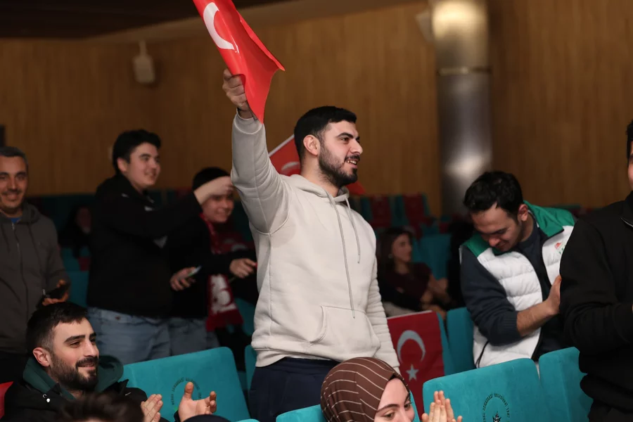 Maç saatinden önce salona gelen vatandaşlar, ellerinde Türk bayrakları ve milli formalarla tribün atmosferini aratmayan görüntüler oluşturdu. Maç boyunca sık sık tezahüratlar yapan futbolseverler, A Milli Takım'a desteklerini alkışlarla gösterdi. Özellikle kritik anlarda yükselen coşku, adeta stadyum atmosferini Osmangazi'ye taşıdı.