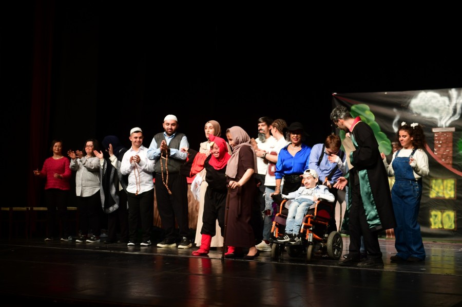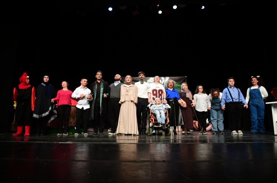 BURSA, 08 Aralık 2025 Pazartesi, 12:25Toplumsal farkındalığı artıran projeleriyle engelli bireylerin yaşamını kolaylaştıran Osmangazi Belediyesi, Osmangazi Kent Konseyi ve Osmangazi Engelliler Meclisi ile birlikte Ahmet Vefik Paşa Bursa Devlet Tiyatrosu'nda 'Miras Değil Mübarek' adlı oyunu sanatseverler ile buluşturdu. Osmangazi Engelliler Meclisi'nin 6 ayı aşkın süren yoğun çalışmalarının ardından 'perde' diyen oyunda, engelli bireyler sahneye ilk adımlarını attı. 3 kardeşin babalarından kalan miras hikayesini, hayata dair önemli mesajların verildiği eğlenceli bir dil ile anlatan oyun, tiyatroyu tamamen dolduran Bursalılar tarafından ayakta alkışlandı. Büyük bir özveri ve disiplin ile çalışmalarının ardından rolleriyle bütünleşen engelli bireyler, başarılı performanslarıyla göz doldurdu.