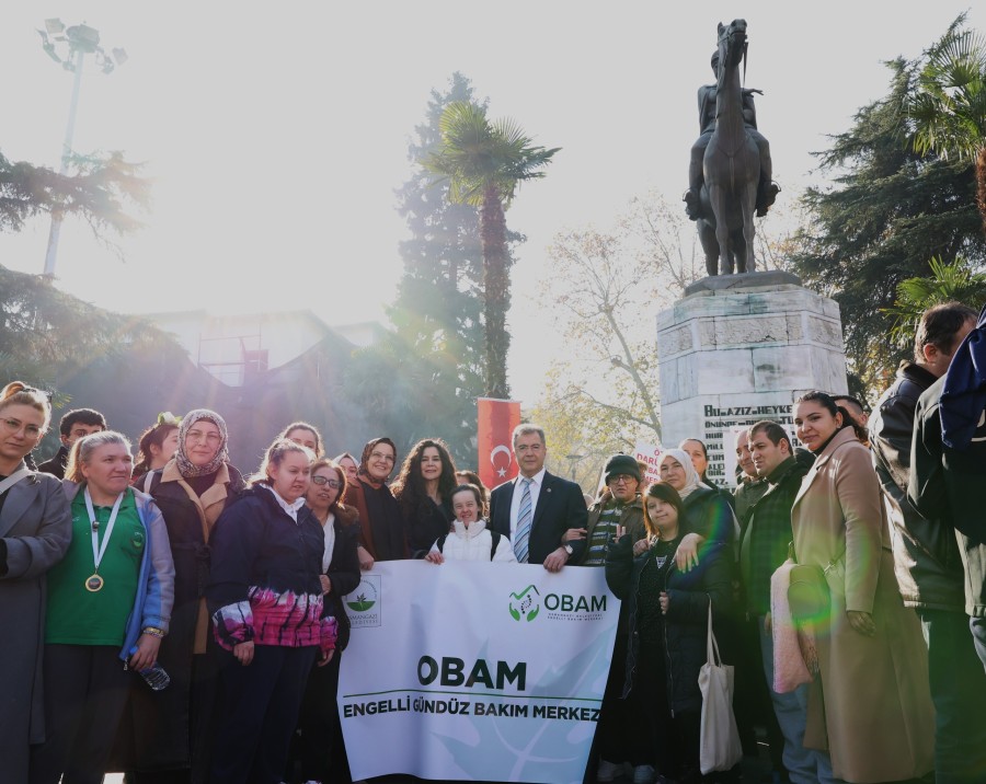 BURSA, 03 Aralık 2025 Çarşamba, 14:58Bursa Aile ve Sosyal Hizmetler İl Müdürlüğü tarafından düzenlenen farkındalık yürüyüşüne OBAM üyesi engelli bireyler, aileleri ile birlikte katıldı. Ellerinde çeşitli mesajlar içeren pankartlar taşıyan katılımcılar, engelli bireylerin sorunlarına dikkat çekerek toplumda farkındalık oluşturmayı amaçladı. 3 Aralık Dünya Engelliler Günü kapsamında düzenlenen yürüyüş, Heykel-Atatürk Anıtı önünde noktalandı. Etkinlikte yer alan Osmangazi Belediye Başkan Yardımcısı Mücahit Yıldızhan, engelli bireylerin yanında olduğunu göstererek yürüyüşe anlam kattı. Program, yapılan açıklamaların ardından Atatürk Anıtı'na çelenk sunulmasıyla tamamlandı.