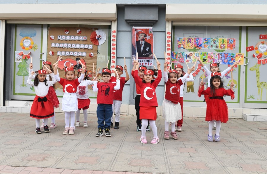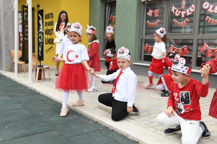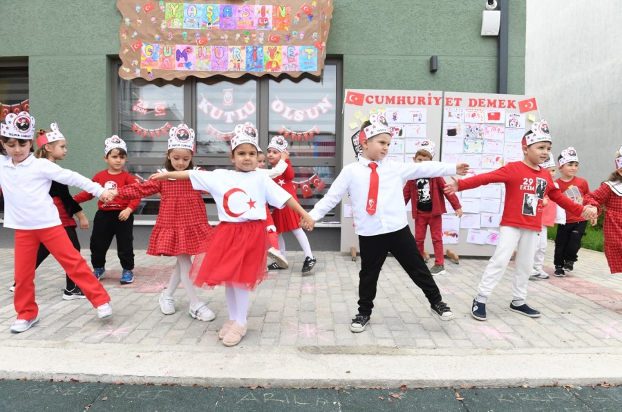 Candan Genceroğlu, Ayça Azak, Zübeyde Ana, Minik Kalpler Kreş ve Gündüz Bakım Evi'nde eğitim gören yüzlerce öğrenci, Cumhuriyet Bayramı'nı şiirler, şarkılar söyleyip çeşitli gösteriler yaparak neşeyle kutladı.