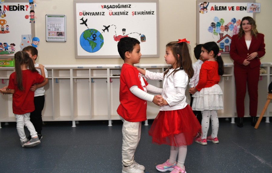 Bunun yanı sıra Başkan Aydın, Candan Genceroğlu Kreş ve Gündüz Bakımevi'ndeki minik öğrencileri ve öğretmenlerini hazırladıkları güzel gösteriler için tebrik etti.