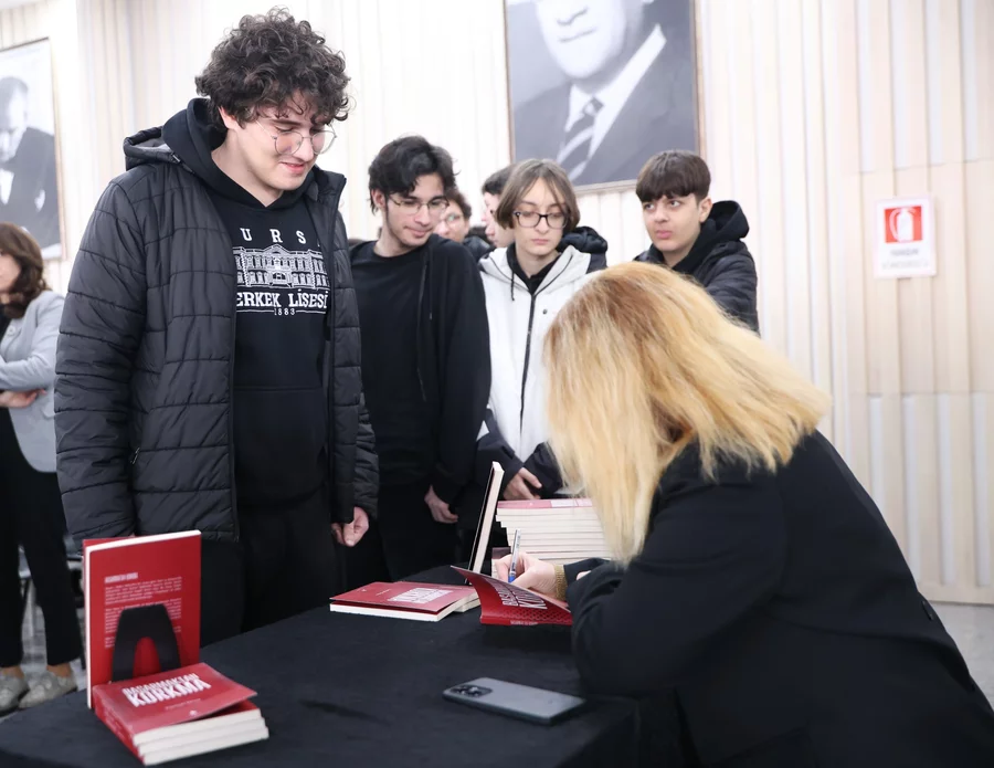 BURSA, 03 Mart 2026 Salı, 11:19Osmangazi Belediyesi, gazeteci ve kurumsal iletişimci olarak 20 yıldır görev yapan Cansel Oruç'un mesleki birikiminden yola çıkarak kaleme aldığı 'Başarmaktan Kokma' adlı kitabı için söyleşi ve imza günü düzenledi. Hasan Âli Yücel Dünya Klasikleri Kütüphanesi'nde gerçekleşen programa Osmangazi Belediye Başkan Yardımcısı Mutlu Esendemir'in yanı sıra öğrenciler ve kitapseverler katılım gösterdi.