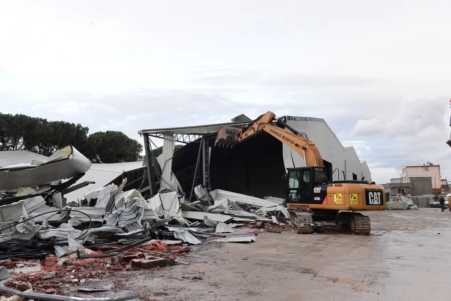 Yapılan incelemelerin ardından, kaçak olarak inşa edildiği tespit edilen bölgedeki depoların yıkım işlemleri ekipler tarafından program dahilinde yürütülüyor.