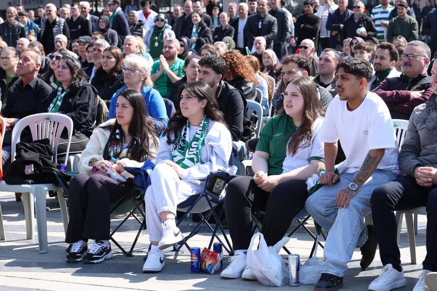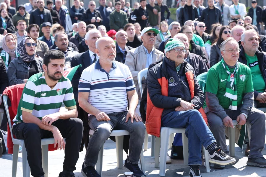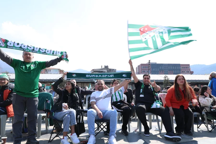 Aileleri ve arkadaşlarıyla birlikte maçı dev ekrandan izlemek için bir araya gelen taraftarlar, karşılaşma boyunca takımlarına tezahüratlarla destek verdi. Bursaspor sevdalıları, şampiyonluk yolunda alınan galibiyetin coşkusunu Osmangazi Meydanı'nda hep birlikte yaşadı. Eskişehir'de oynanan mücadelede yeşil-beyazlı ekip, rakibini 1-0 mağlup ederek önemli bir galibiyet elde etti.