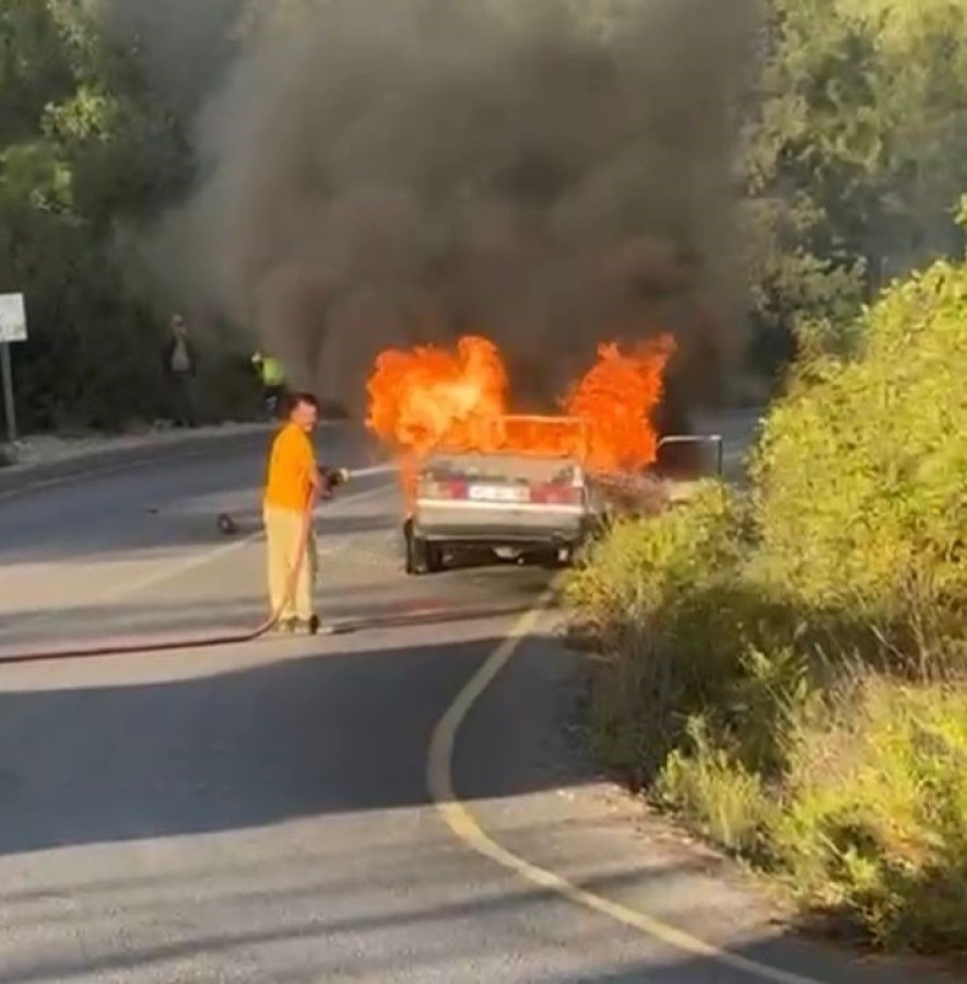 Osmaniye'de araç yangını ormana sıçramadan söndürüldü