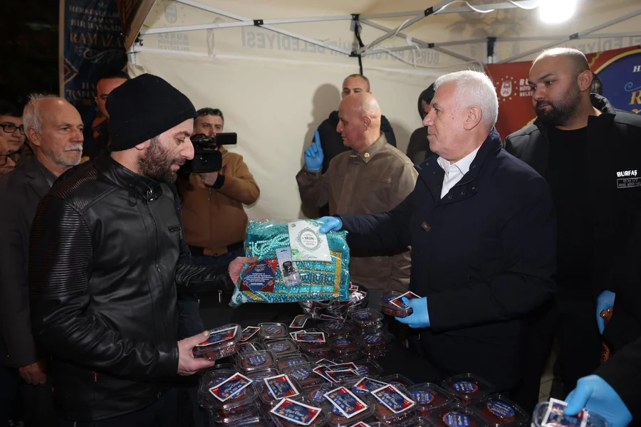 Bursa Büyükşehir Belediye Başkanı Mustafa Bozbey, aynı iftar sofrasını paylaşmaktan büyük mutluluk duyduklarını belirtti. Her gün 17 ilçede kurulan iftar sofralarında Bursa Büyükşehir Belediyesi'nin vatandaşın yanında olduğunu söyleyen Başkan Mustafa Bozbey, 14 ayrı noktada da iftariyelik dağıtmaya devam ettiklerini hatırlattı. Ramazan ayında dayanışmayı büyütmeye devam ettiklerini ifade eden Başkan Mustafa Bozbey, "Türkiye'nin en güzel şehirlerinden biri olan Bursa'da, Ramazan ayını manevi ve dayanışma yönünden çok güzel şekilde geçiriyoruz. Kültürpark'ta oluşturduğumuz Ramazan Sokağı'nda ise direkler arası denilen kültürü yaşatıyoruz. Bursa Büyükşehir Belediyesi olarak her zaman halkımızın yanındayız. Hayırlı Ramazanlar diliyorum" dedi.