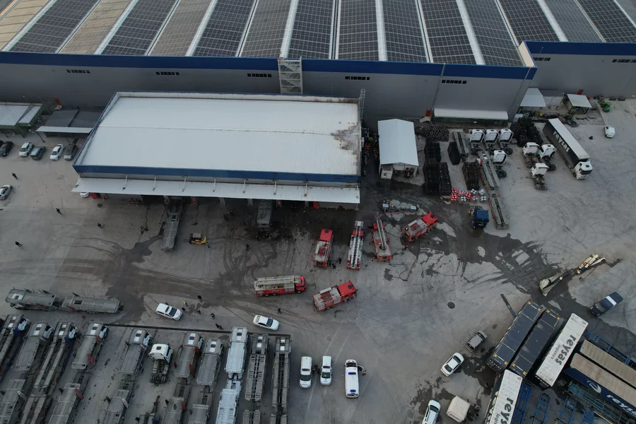 Sakarya'da lojistik firmasında yangın: 1 itfaiye eri yaralandı