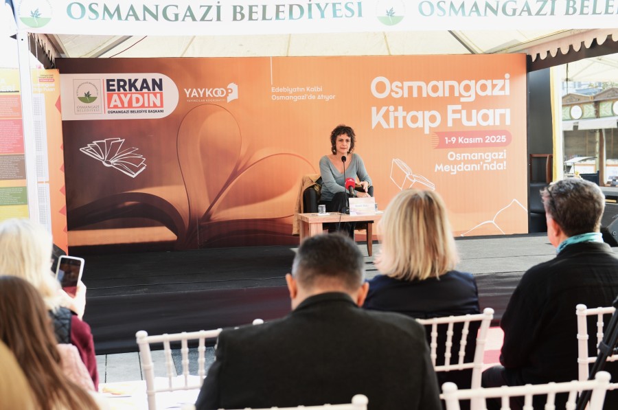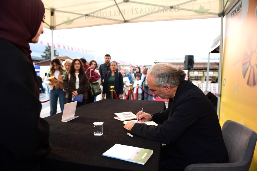 BURSA, 09 Kasım 2025 Pazar, 10:22Osmangazi Belediyesi'nin YAYKOOP (Yayıncılar Kooperatifi) iş birliğinde bu yıl 1'incisini düzenlediği Osmangazi Kitap Fuarı, Osmangazi Meydanı'nda bir birinden özel yazarları okurlarıyla buluşturmaya devam ediyor. Fuarın 8'inci gününde yazarlar Prof. Dr. Emre Kongar, Tarık Tufan, Irmak Zileli ve Dr. Meral Saklıyan, okurlarıyla bir araya geldi. Düzenlenen söyleşilerde okurlar yazarlara kitaplarında merak ettiği konularla ilgili çeşitli sorular sordu. Yazarlarda bu sorulara içtenlikle bir birinden güzel cevaplar verdi. Keyifli geçen söyleşilerin ardından düzenlenen imza günüyle yazarlar okurlarının kitaplarını imzaladı.