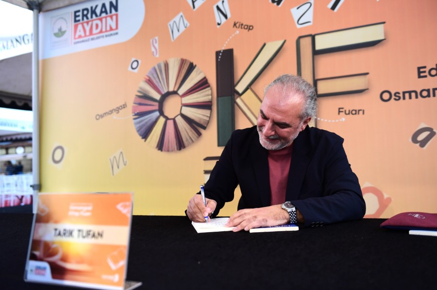 Bursa Osmangazi'de bir kitap fuarının düzenlenmesinin bir yazar olarak kendisini mutlu ettiğini belirten Yazar ve Senarist Tarık Tufan, "Bursa ve Osmangazi her yönüyle bu ülkenin önemli kültür ve insan merkezlerinden bir tanesi, Osmangazi'de edebiyatın ve romanın konuşulduğu böylesi önemli etkinlikler organize etmek yazar ve okur için çok kıymetli, bizde bu güzelliğin bir parçası olduk. Dilerim uzun soluklu kitap fuarları Osmangazi'de devam eder Roman yazarı olarak biz okurlarla bir araya geldiğimizde hikayenin insanın hayatındaki anlam ve değerini konuşmaya çalışıyoruz. İnsanın bir romana ve kahramanına tutunması insanın hayatında son derece hayati bir yere karşılık geliyor. Romanlar bizim hayatımızda bir umutsuzluk anında duygularımızın kendi içinde çeliştiği ve çatıştığı anlarda bize yeni bir umut veren metinler ve anlatılardır" ifadelerini kullandı.
