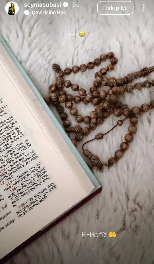 Subaşı bir diğer paylaşımında ise, Kuran-ı Kerim paylaşarak 'El-Hafız' notunu düştü.