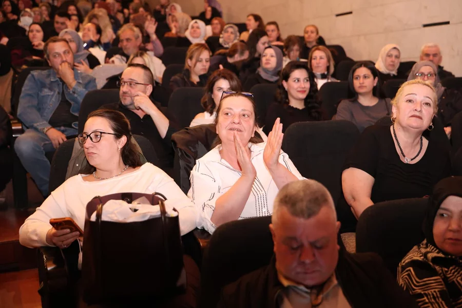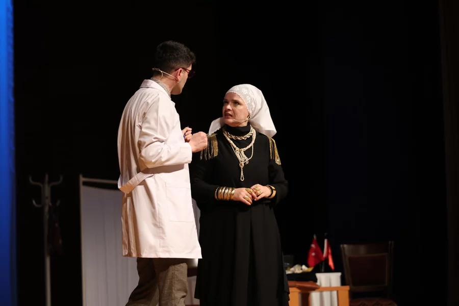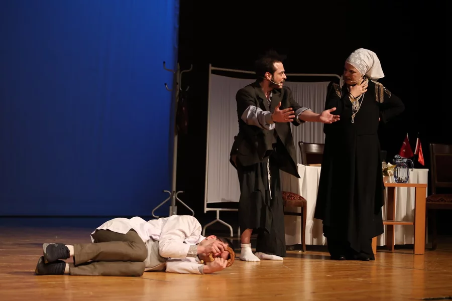 Oyunu yazan ve yöneten Yusuf Emini, Selviye Hürriyet ve Ercan Sarı'nın aynı zamanda sahnede oyunculuğunu sergilediği oyun, Rumeli kültürünü, gelenek ve göreneklerini, aile içi ilişkileri ve Balkan coğrafyasının sıcaklığını esprili bir dille ele aldı. Yalnızca belirli bir yöreye ait unsurları değil, evrensel temaları da sahneye taşıyan oyun, özellikle kadın karakter üzerinden ilerleyen hikayesiyle, her kesimden izleyicinin kendinden bir parça bulabileceği güçlü bir anlatım sundu. Salonun büyük bölümünü dolduran izleyicilerden tam not alan "Taksiratli Şekibe", alkışlarla ödüllendirilirken, izleyicilere de adeta bir kahkaha tufanı yaşattı. Samimi anlatımı ve sıcak atmosferiyle dikkat çeken oyun, Osmangazili sanatseverlere unutulmaz bir akşam sundu.