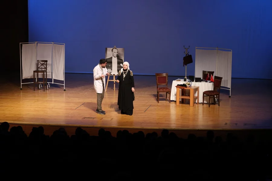 BURSA, 15 Nisan 2026 Çarşamba, 12:48Kültür ve sanata verdiği önemi hayata geçirdiği projelerle sürdürmeye devam eden Osmangazi Belediyesi, ilçede yaşayan vatandaşları nitelikli sanat etkinlikleriyle buluşturuyor. Bu doğrultuda pek çok tiyatro oyununu Osmangazili sanatseverlerin huzuruna sunan Osmangazi Belediyesi, son olarak Bursa Tüm Rumeli Dernekleri Federasyonu (RUMELİFED) ve Namık Kemal Halk Oyunları Gençlik ve Spor Kulübü Derneği (NAKEM) işbirliği ile "Taksiratli Şekibe" adlı oyunu sahneye taşıdı. Yusuf Emini ve Selviye Hürriyet'in kaleme aldığı, Ercan Sarı'nın yönetmenliğini üstlendiği tek perdelik Rumeli komedisi türündeki oyun, Merinos Atatürk Kongre ve Kültür Merkezi bünyesindeki Orhangazi Salonu'nda sahnelendi. Osmangazi Belediye Başkanı Erkan Aydın'ın yanı sıra, RUMELİFED Başkanı Sedat Şengül, NAKEM Başkanı Celal Yalçın, CHP Osmangazi İlçe Başkanı Raşit Gürbüz, RUMELİFED Kurucu Başkanı Selim Yedikardeş, Kuzey Makedonya Bursa Fahri Konsolosu Halil Bedzeti, Nilüfer Belediye Başkan Yardımcısı Okan Şahin, RUMELİFED Kadın Kolları Başkanı Ebru Uzer, Osmangazi Belediyespor Kulübü Başkanı Fatih Karayılan ve Osmangazili sanatseverlerin ilgi ile takip ettiği oyun, izleyicilere hem duygusal, hem de keyifli anlar yaşattı.