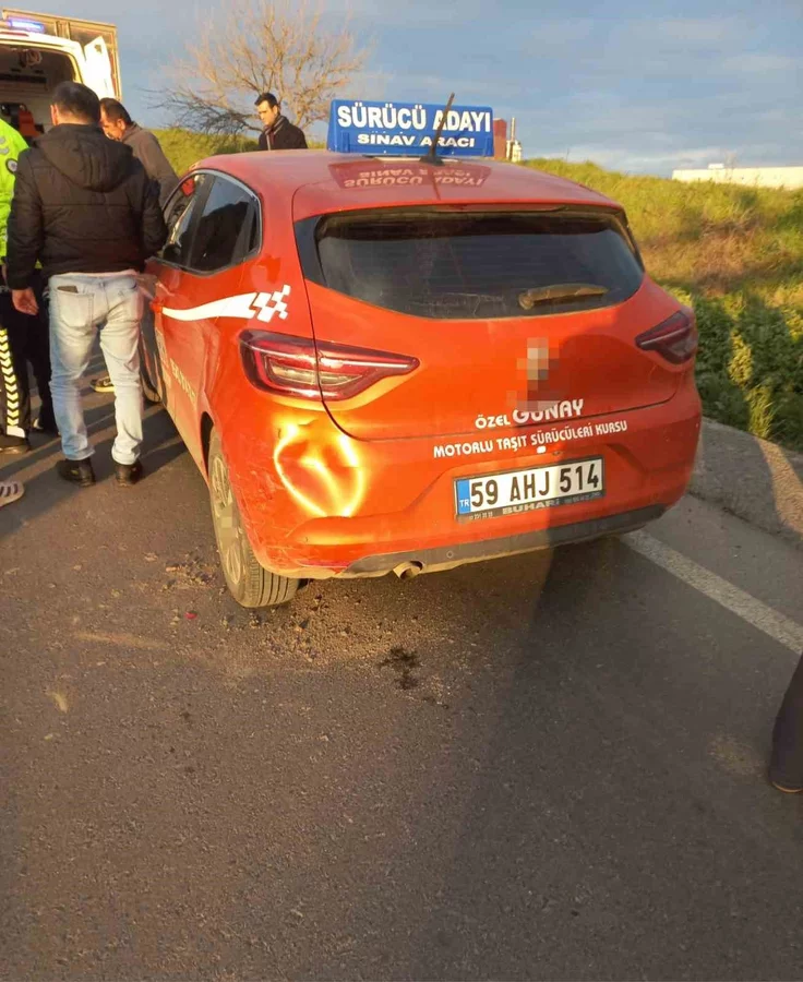 Kaza, İstiklal-Kurtpınar OSB Mahallesi Atatürk Caddesi üzerinde yaşandı. İddiaya göre, bir sürücü kursuna ait otomobile arkadan çarpan motosiklet sürücüsü yaralandı. Olay yerine sağlık ekipleri sevk edildi. İlk müdahalesi kaza yerinde yapılan yaralı, ambulansla Tekirdağ Dr. İsmail Fehmi Cumalıoğlu Şehir Hastanesi Acil Servisi'ne kaldırıldı.