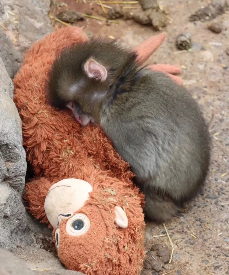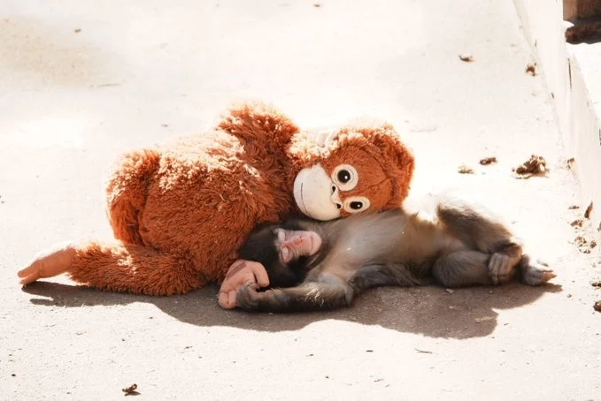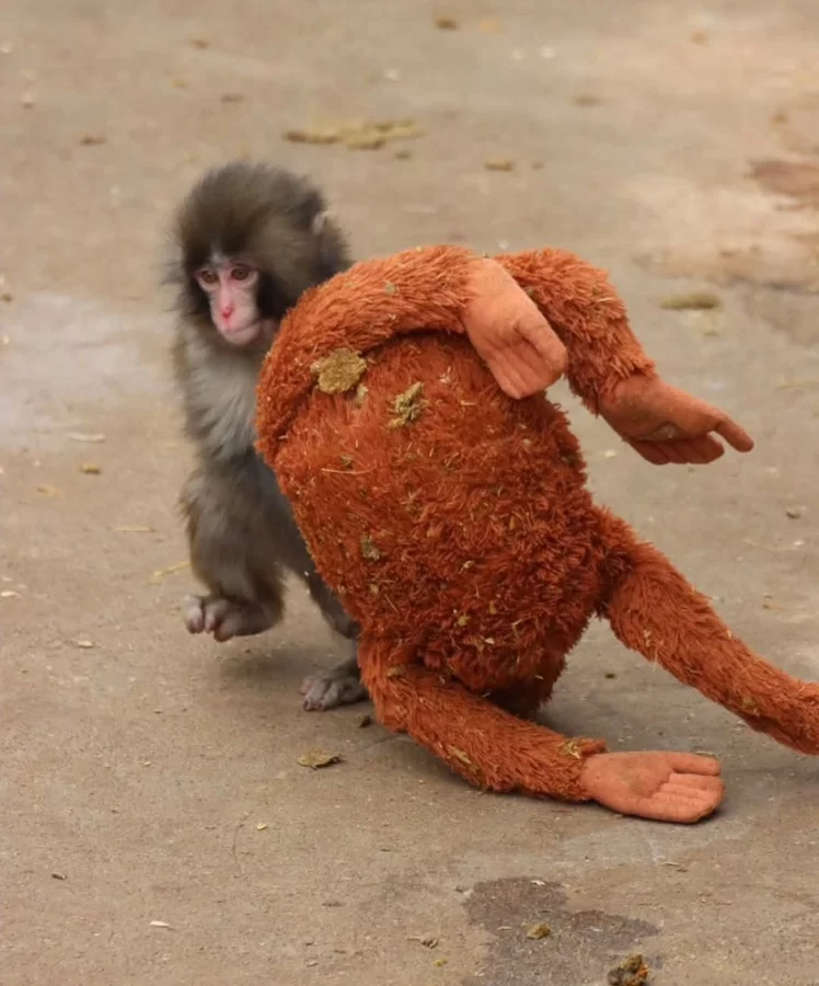 Terk edilen yavru maymun "Punch", oyuncağını annesi sanıyor