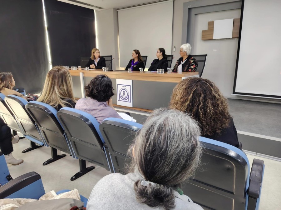 Bursa Barosu Kadın Hakları Merkezi'nden Bilgen Şentürk, Bursa Veteriner Hekimleri Odası'ndan Özlem Hasanoğlu ve Bursa Eczacılar Odası'ndan Gökçenay Derebaşı Hanlı'ydı. Panelde kadınların meslek hayatlarında yaşadıkları sorunlar konuşuldu.