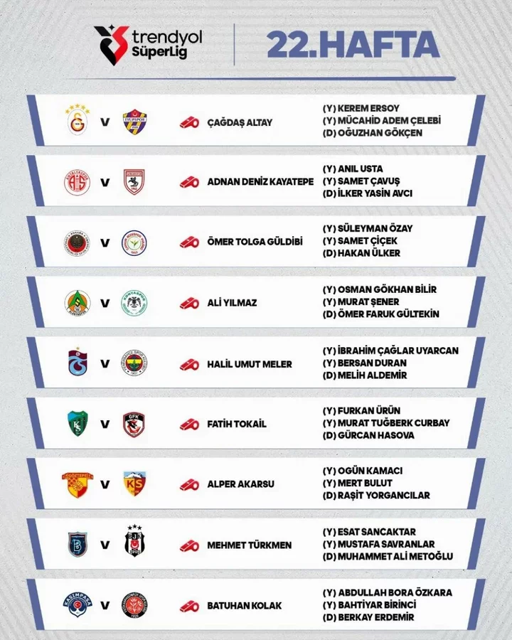İşte Süper Lig'de 22. haftanın hakemleri: