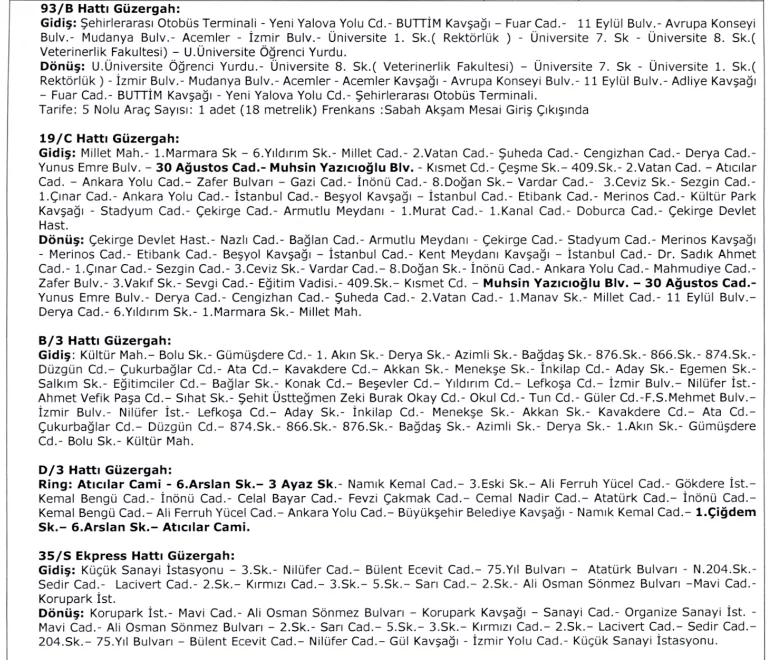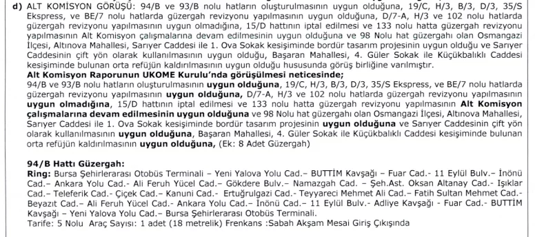 UKOME kararıyla 94/B ve 93/B numaralı otobüs hatlarının oluşturulması uygun bulundu. Yeni hatların özellikle sabah ve akşam mesai giriş-çıkış saatlerinde hizmet vermesi planlandı.