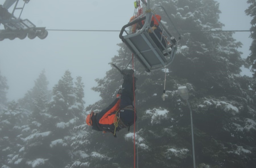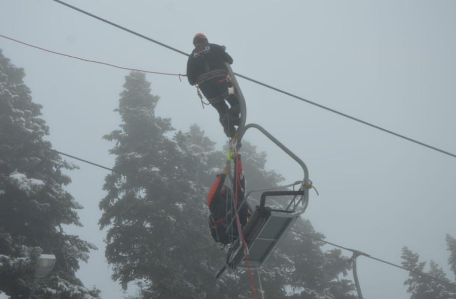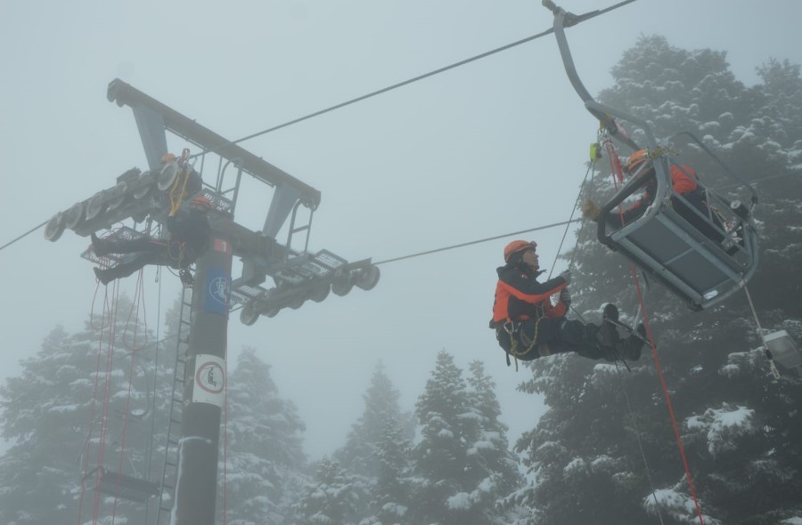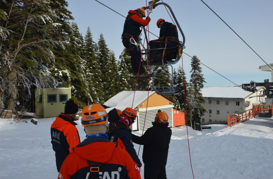 Kış aylarında sağlıklı bir insanın bile eksi derecelerdeki havada hareketsiz kalması, donma tehlikesi yaşamasıyla karşı karşıya gelebileceğini belirten ekipler, senaryo gereği teleferikte mahsur kalan ekip arkadaşlarını güvenli bir şekilde kurtardı.