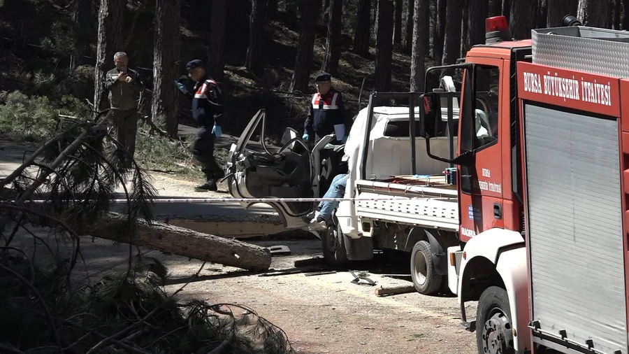 BURSA, 29 Nisan 2026 Çarşamba, 12:41Olay, Osmangazi ilçesi Uludağ Milli Parkı girişi yanındaki Bağlı Mahallesi'nde saat 09.00 sıralarında meydana geldi. Edinilen bilgiye göre, M.B. (57) orman kesimi yaptığı sırada kestiği çam ağacı, seyir halinde olan Temel Kurt (35) idaresindeki 16 CFF 20 plakalı kamyonetin üzerine devrildi. Kamyonetin tam kabin kısmına gelen ağacın altında kalan Kurt, olay yerinde hayatını kaybetti.