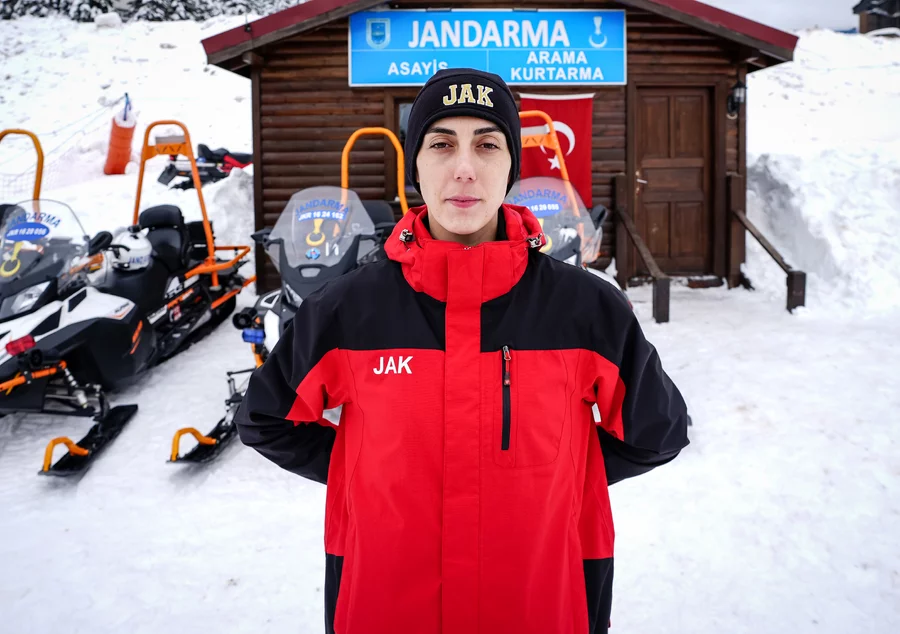 Tanç, sıcaklığın sıfırın altında 10 dereceye düştüğü, sis ve tipi gibi olumsuz hava koşullarının yaşandığı 1800 rakımlı Uludağ Oteller Bölgesi'nde erkek meslektaşlarıyla hayat kurtarıyor.