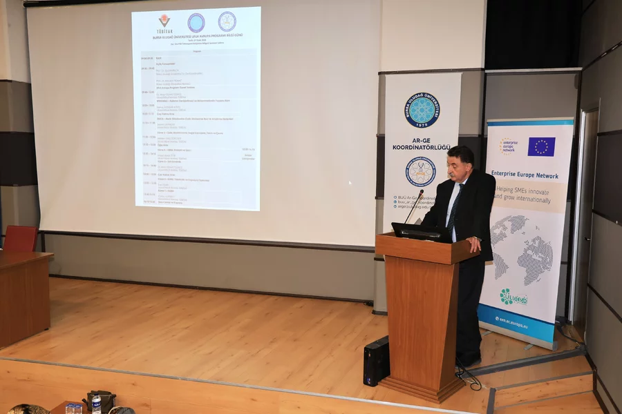 Etkinliğin açılış konuşmasını gerçekleştiren Rektör Yardımcısı Prof. Dr. İrfan Kırıştoğlu, BUÜ'nün zaman içerisinde güçlü bir proje kültürü kazandığını, ancak bu kültürün yerel odaklı TÜBİTAK projelerinden daha geniş bir uluslararası ekosisteme evrilmesi gerektiğini vurguladı. Avrupa Birliği projelerine başvurmanın sadece üniversiteye değil, aynı zamanda ülkeye ciddi bir kaynak aktarımı sağlayacağını belirten Kırıştoğlu, bu programların temelinde ortak çalışma disiplini ve geniş ağlar kurma hedefinin yattığını ifade etti. Uzmanlarla yapılacak birebir görüşmelerin teknik bilgi birikimini artıracağını dile getiren Kırıştoğlu, etkinliğin tüm katılımcılar için somut kazanımlarla sonuçlanmasını dileyerek konuşmasını tamamladı.