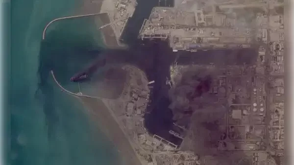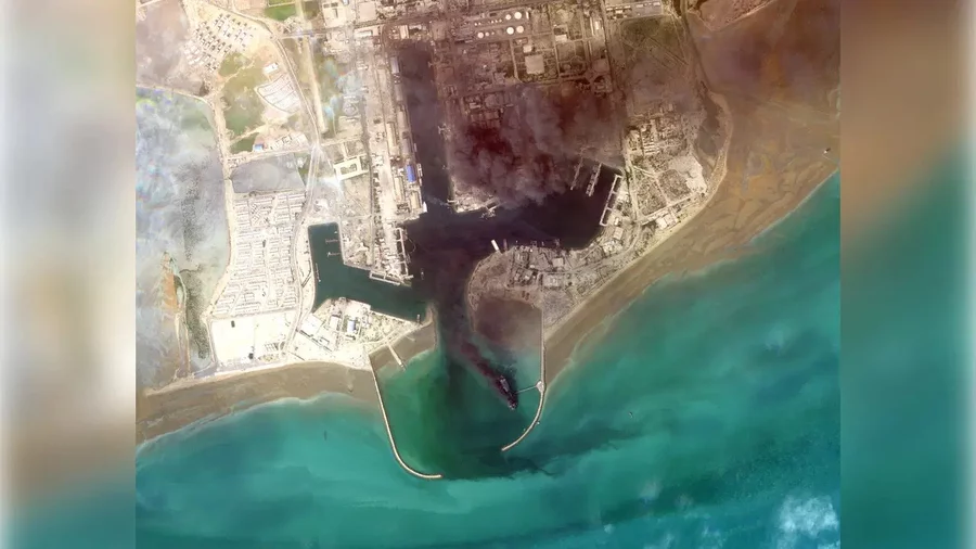 The New York Times tarafından analiz edilen uydu görüntülerinde, Bender Abbas'taki İran deniz üssünde en az dört askeri gemiden yoğun duman yükseldiği ve yangınların 24 saatten uzun süredir devam ettiği bildirildi.